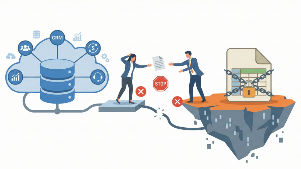 案件は顧客(会社・担当者)と紐づき、過去のやり取り(メール・会議・見積・契約)と紐づき、次アクション(タスク)と紐づいて、初めて価値が出ます。にもかかわらず、案件だけ別ファイルにすると「紐づき」が運用上は切れます。切れた瞬間、次の3つが起きます。