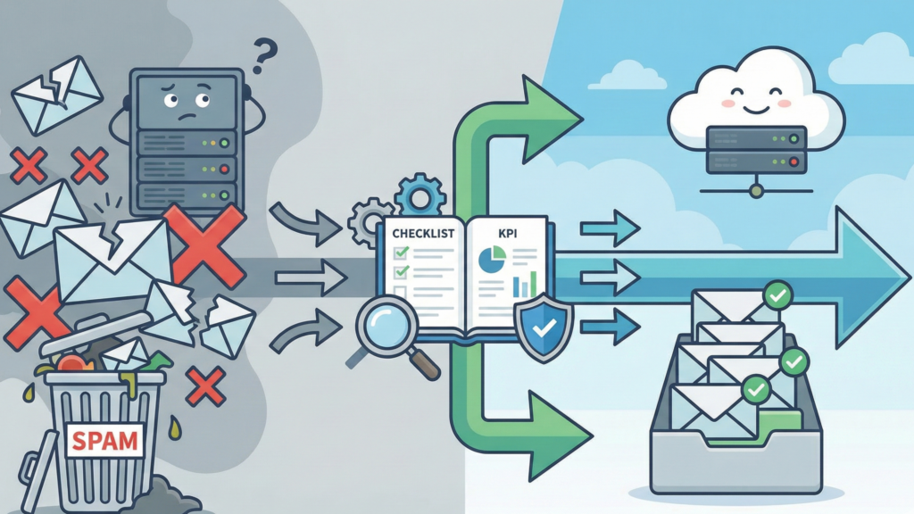 本記事では、メールが届かない原因を「技術」「運用」「文面・設計」に分けて整理し、再発防止のための**運用KPI(重要業績評価指標)**まで落とし込みます。特定ツールの導入ではなく、**どの配信環境でも通用する”チェックの順番”**を軸に解説していきます。
