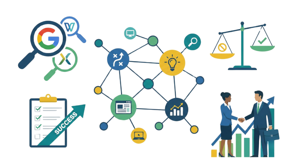 「戦略から実行まで一気通貫で支援します」「成果にコミットします」「最新のAI技術を活用します」——どの会社のWebサイトにも似たような言葉が並んでいます。しかし、実際に依頼してみると、戦略だけ語って手を動かしてくれない会社、レポートは立派だが売上には繋がらない会社、そもそも自社の業界を理解していない会社……そんな「ハズレ」を引いてしまった経験がある方も少なくないはずです。