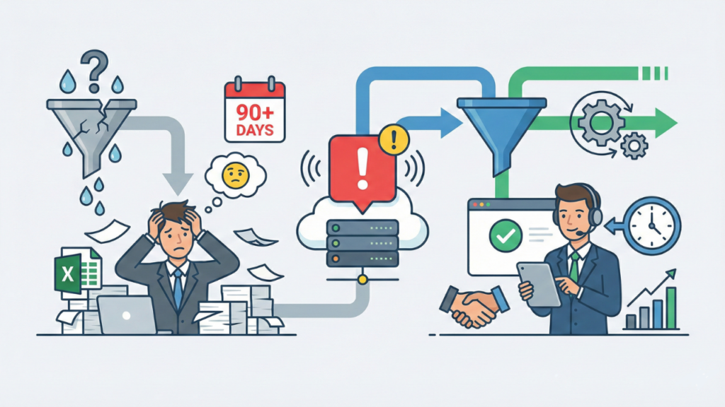 今回ご紹介した「90日アラート」は、そうした仕組みの中でも最もシンプルかつ即効性のある第一歩です。日々の訪問活動から属人性を排除し、データに基づいたファネル管理を実現できたとき、あなたの営業チームは「いつの間にか顧客がいなくなっている」という不安から解放されます。